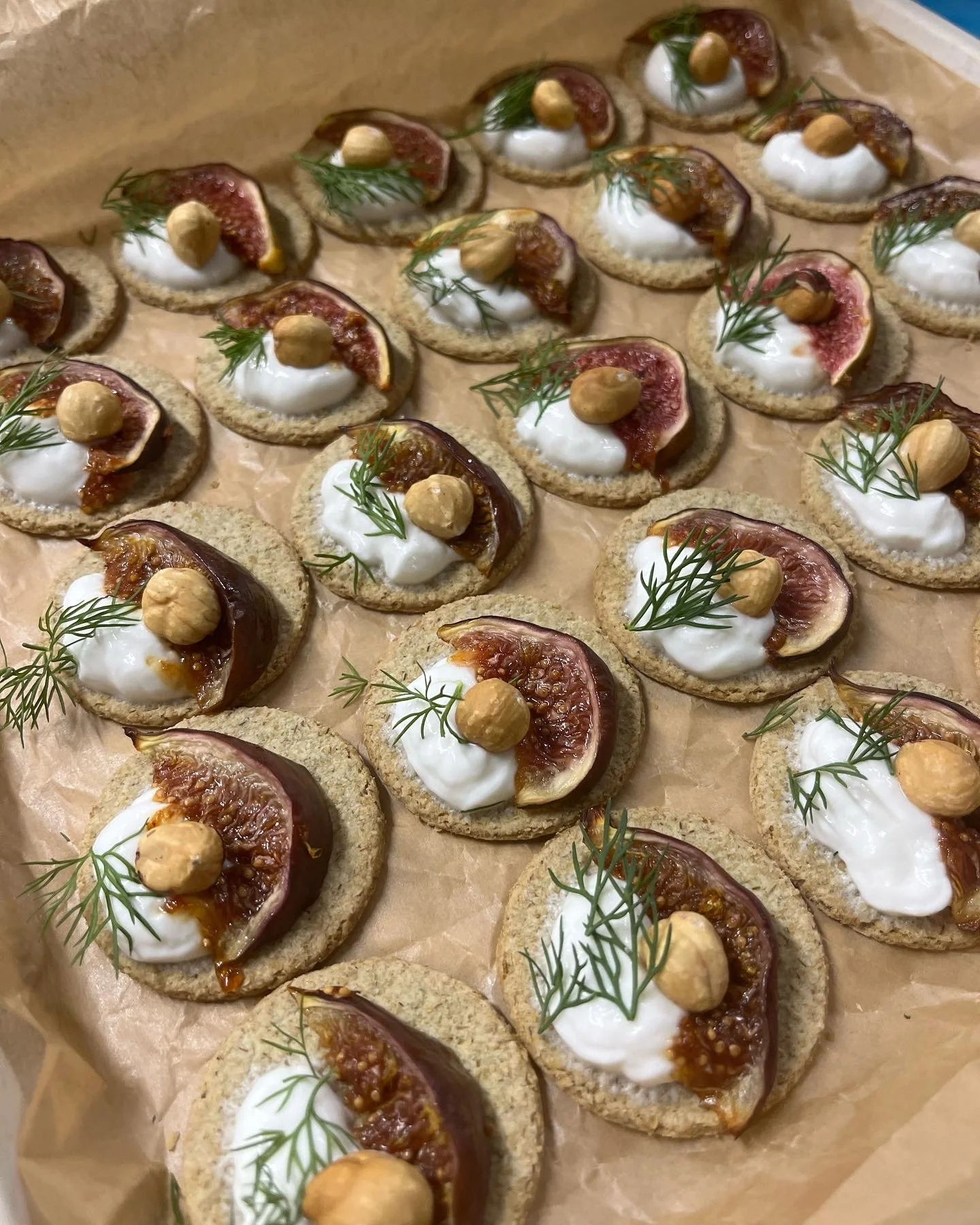 Delivery canapés (canapés arrive fully assembled on disposable biodegradable platters)